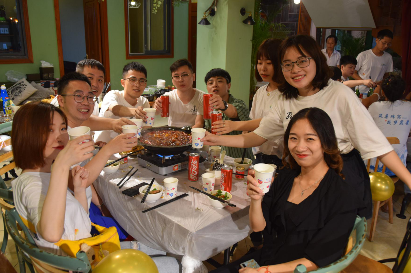 晚宴時(shí),大家在一片歡聲笑語(yǔ)中共飲杯中酒,酒喝干,再斟滿,這是一路走來(lái)的情誼。伴隨著祝福,伴著笑語(yǔ),伴隨著熱騰騰的火鍋,周年慶的歡樂(lè)時(shí)光也即將圓滿落幕,飯后,大家分別組成興趣組,有唱歌、有棋牌、游戲,大家一起將慶典延續(xù)到了落幕。