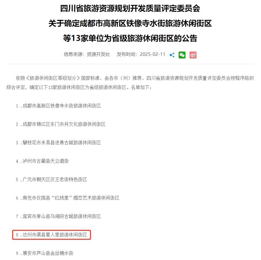 近日,四川省旅游資源規(guī)劃開發(fā)質(zhì)量評定委員會(huì)發(fā)布公告,13家單位達(dá)到省級旅游休閑街區(qū)標(biāo)準(zhǔn),正式確定為省級旅游休閑街區(qū)。其中,晟景文旅服務(wù)項(xiàng)目達(dá)州市渠縣賨人里旅游休閑街區(qū)名列其中,成功榮獲這一殊榮。
