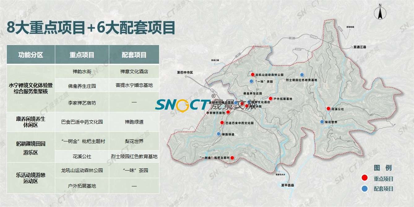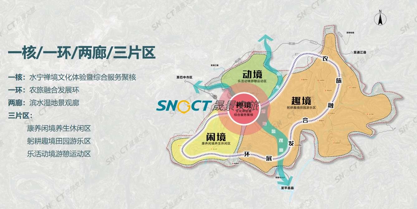 通過塑立水寧文化IP,回歸禪境藥鄉(xiāng)時(shí)光,完善配套服務(wù)設(shè)施等三大理念策略,助水寧寺突破現(xiàn)狀旅游困局。以“禪”為靈魂,以“養(yǎng)”為特色,以生態(tài)為載體,充分利用全域資源,經(jīng)營(yíng)生態(tài)、經(jīng)營(yíng)環(huán)境、經(jīng)營(yíng)鄉(xiāng)村、經(jīng)營(yíng)文化,通過“一核、一環(huán)、兩廊、三片區(qū)”空間結(jié)構(gòu)重塑,8大重點(diǎn)項(xiàng)目+6大配套項(xiàng)目的功能分區(qū)布局,“+旅游”,布局“2+2”產(chǎn)業(yè)融合發(fā)展模式,形成全鏈?zhǔn)桨l(fā)展,以實(shí)現(xiàn)將水寧寺鎮(zhèn)打造成禪養(yǎng)微度假目的地。