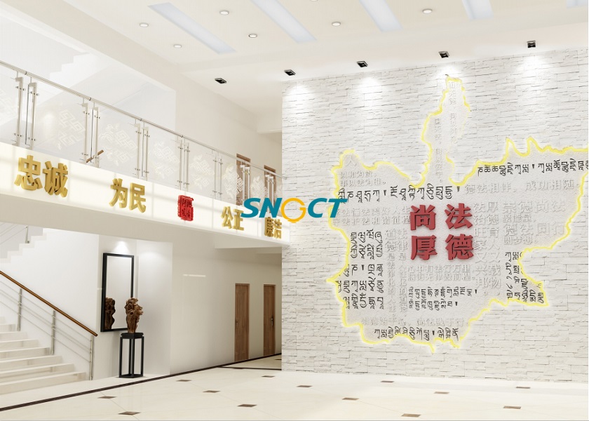阿壩縣人民檢察院位于阿壩藏族羌族自治州阿壩縣阿壩鎮(zhèn)。以“守護(hù)一方凈土”為主線,通過規(guī)劃四個(gè)主題來詮釋主線:以檢凝民心、丹心為民意、正本亦清源、和光煦檢路,結(jié)合當(dāng)?shù)鬲?dú)特的民族元素展現(xiàn)檢察文化、職能文化、紀(jì)律文化和團(tuán)隊(duì)文化,將阿壩縣檢察人以普法力、服務(wù)力、戰(zhàn)斗力、關(guān)懷力守護(hù)阿壩縣山水人城一方凈土的故事娓娓道來。本次設(shè)計(jì)的主題為:一樓以檢凝民心”,二樓“丹心為民意”,三樓“正本亦清源”,四樓“和光煦檢路”。